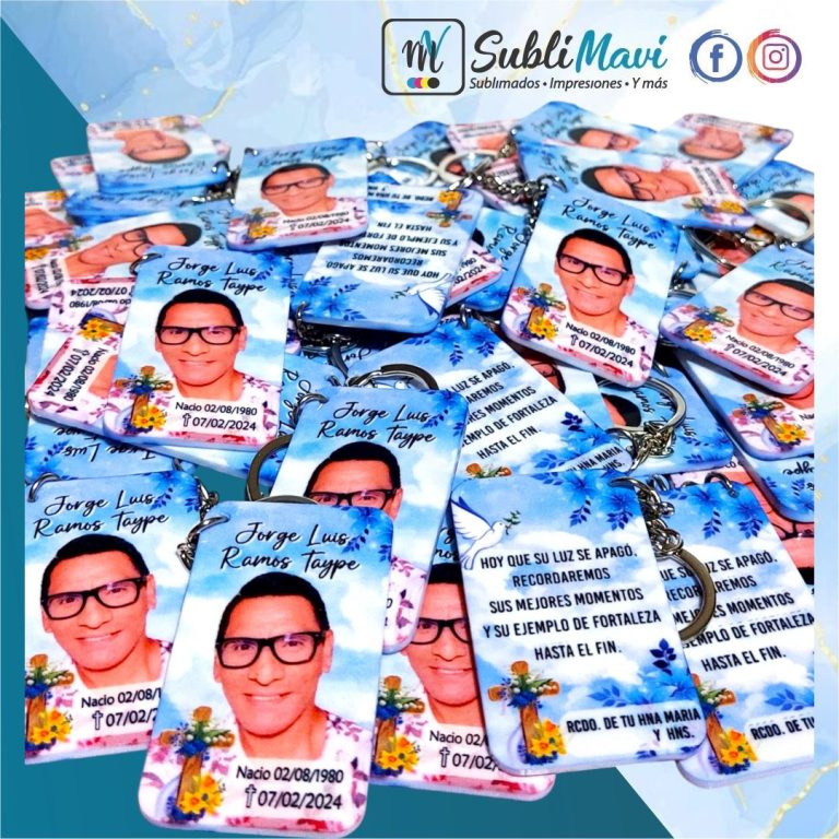 Honra a esa persona especial con llaveros acrílicos sublimados recordatorios, un detalle significativo para compartir en misa, mes o aniversario. ✨